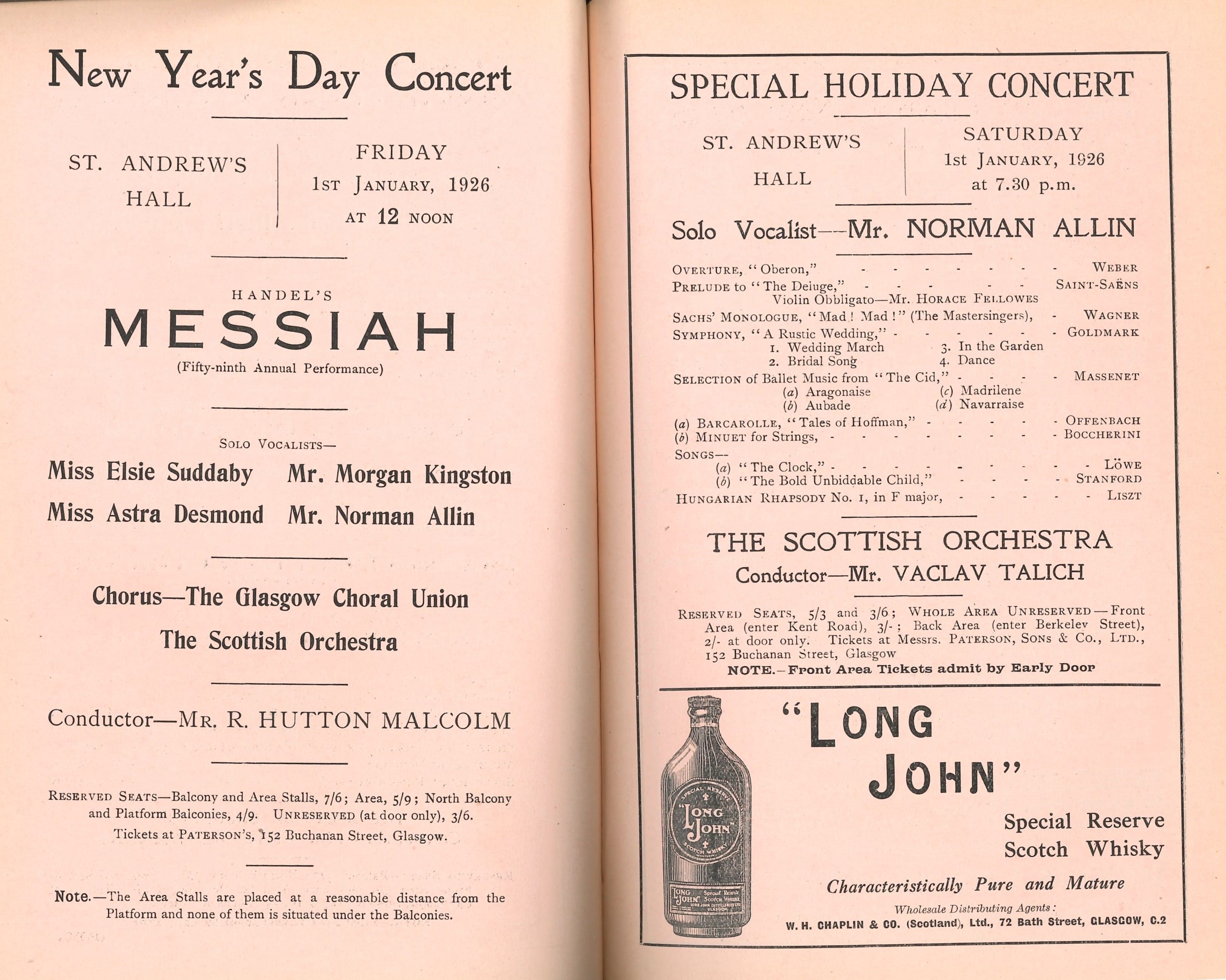 Taken from the RSNO Archives: Handel’s Messiah on 1 January 1926.